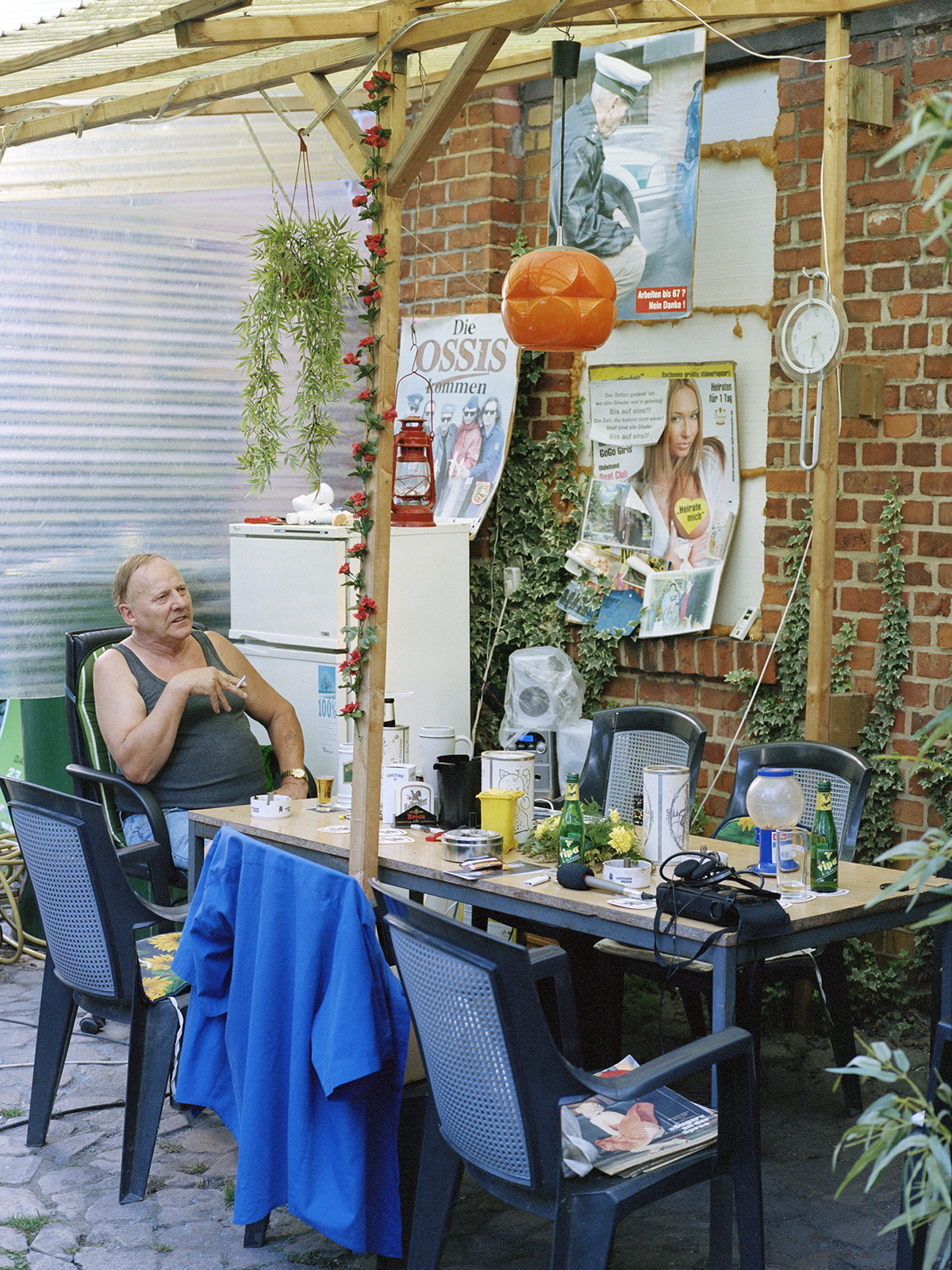 My photographic work explores identity and memory in areas that have been affected by major changes in the more distant past. In my degree project in the former German Democratic Republic I investigate how people today, 18 years after the break of communism, integrate memories of the socialist past into their everyday lives. This work is part of a larger project that explores the relationship between individual remembering of the socialist past in former East Germany, and academic and popular discourse as conveyed through the media and political discussion. The images represent glimpses of individual memories as I perceived them from conversations during my journey through the former German Democratic Republic in the summer of 2007: a time when the unification has become normalised, a whole generation has already grown up without personally having experienced a separated Germany; but also a time when traces of the former divide are still omnipresent in German media and everyday conversations. My images focus on the visual surroundings of people – mainly places and objects – as well as the way people chose to present themselves in front of the camera. Thus, through evoking memories and imagination, I hope that the viewer will get access to people’s experiences in former East Germany today.