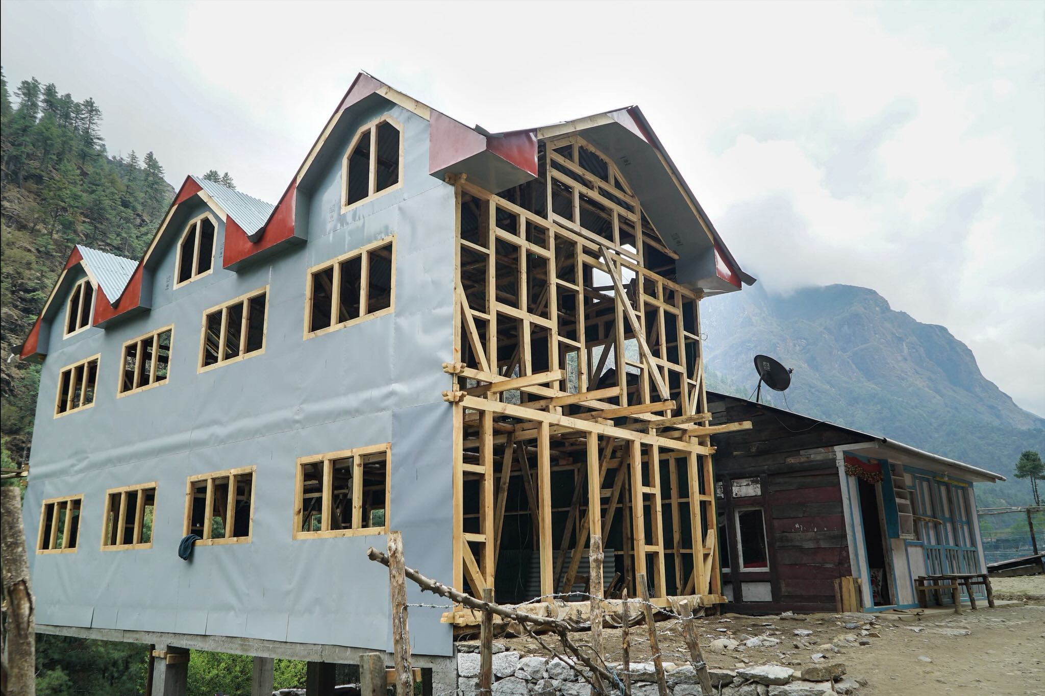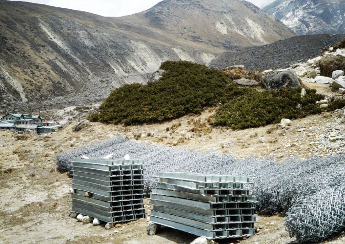 The construction of tourist infrastructure and amenities are constant features, despite the remote location of the Sagarmatha National Park, where Mount Everest is situated. As there are no roads, all building materials are carried by yak, or by porters.